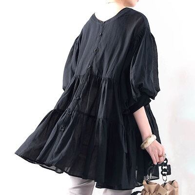 リボン Tシャツ シャツ上着フリルシャツレースレディースバックプリーツティアードブラウスブラウス