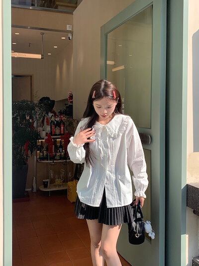 2024春夏 トップス 甘め シャツ 薄手 長袖 丈短め スリム かわいい おしゃれ 大人っぽい襟カジュアルカラー きれいめ 夏 カラー ネックファッションフレンチお出かけ