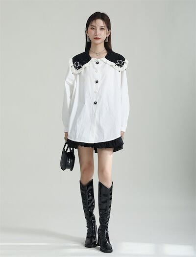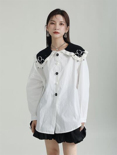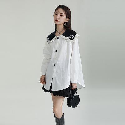 【J.Fashion】 可愛ブラウス 付け襟 小柄 フリル レディースブラウス レディース シャツ 花柄 リボン 長袖 オフィス 韓国 体型カバー 日焼け止め メガ割