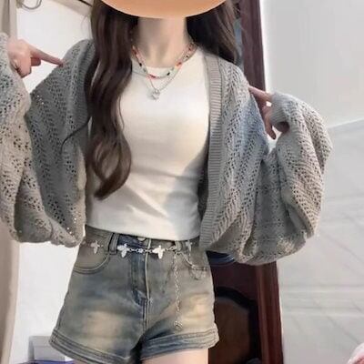 人气 新作 カーディガン 韓国ファッション透かし編み 紫外線対策 ニットブラウス 夏 ゆったり気だるい風日焼け止めカーディガンストールコート薄手 アウターメガ割