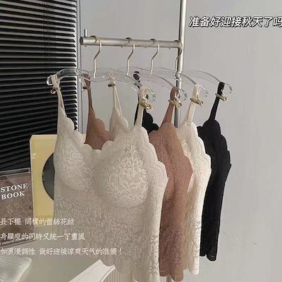 セクシーレース キャミソールTシャツ フレンチ カップ付きインナー レディーストップス 柔らか快適