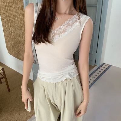 レースVネック キャミソール レディース インナーアンダーシャツトップス 柔らか快適