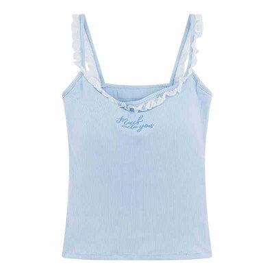 準備ノースリーブカップ付きインナーレースの ブルーキャミソール トップス 快適軽量 肌触りがいい レディース