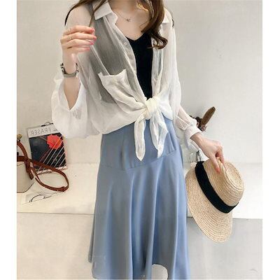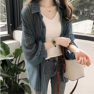 カーディガン レディース UVカット ストライプ 日焼け対策 ポケット付き ストール プリーツ カーデ 羽織 紫外線対策 薄手 ショール 冷房対策