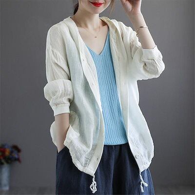 カーディガン uvカット ライトアウター 冷房 薄手 軽量 リネンカーディガン リネンシャツ トップス レディース 夏物 開襟 ボタン リボン 長袖 やや透け感