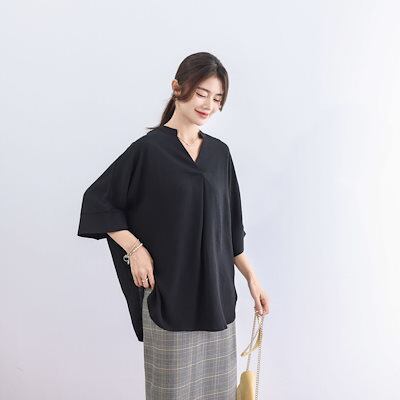 ゆったり 好生地2025新作日韓Vネック無地 シャツレディースシンプル カジュアル トップス 通勤