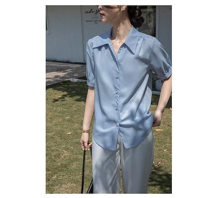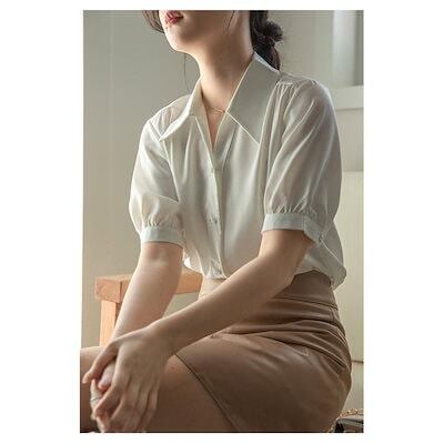 ブラウスシャツ レディース シャツ ブラウス 半袖 前開き トップス 無地 ビジネス カジュアル シンプル おしゃれ ゆったり フォマール 仕事 面接