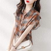 激安 ブラウスシャツ レディース シャツ ブラウス 半袖 前開き トップス チェック柄 チュニック カジュアル リラックス おしゃれ ゆったり 春夏