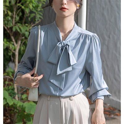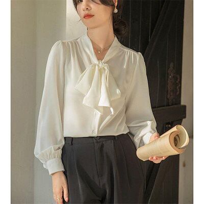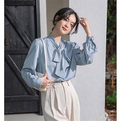 ブラウス シャツ 長袖 レディース リボン トップス シフォン ビジネス おしゃれ ゆったり オフィス 入学式 カジュアル きれいめ 春 上品