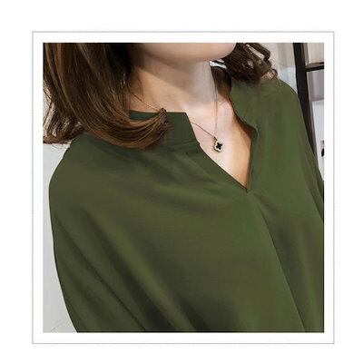 ブラウス 長袖 七分袖 シャツ 春 夏 秋 トップス オフィス ゆったり きれいめ Vネック フリーサイズ 無地 カジュアル