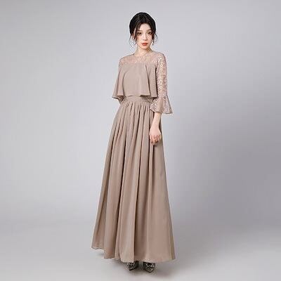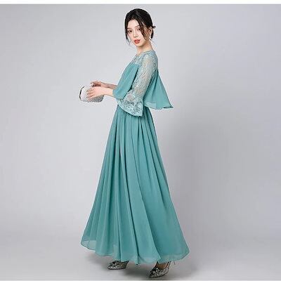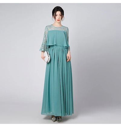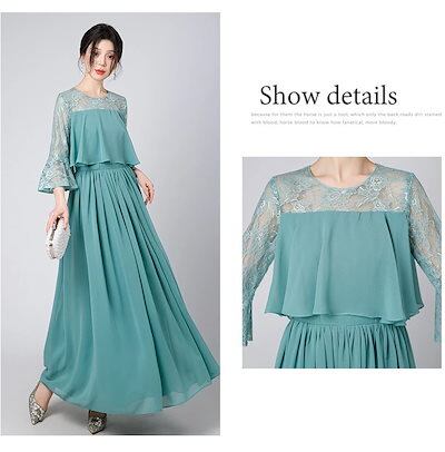 【縁夢】 レース袖 フリル イブニングドレス ロングワンピース イブパーティードレス キャバ 着痩せ 大人 同窓会 披露宴 卒業式 結婚式 演奏会 ウェディング 二次会 発表会 メガ割