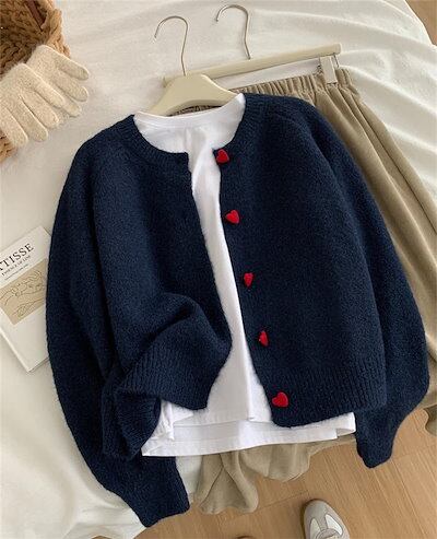 ニットカーディガン レディース 春 秋 冬 ニット カーディガン 秋冬 ライトコート トップス もこもこ ニット 柔らかい シンプル クルーネック ハートボタン 重ね着 羽織り 大きいサイズ ゆったり