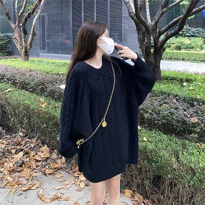 ブラウスニット メリヤス麻のセーターコート冬の新作秋のゆったりとしたリラックス風ニットセーター女ラウンドネックニットあったか!カシミヤタッチロンT ベーシックニット