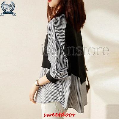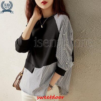 プルオーバー レディース カットソー チュニック トップス 切り替え 長袖 大きいサイズ ロンT Aライン 体型カバー ストライプ お洒落 大人 かわいい 春