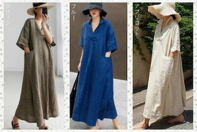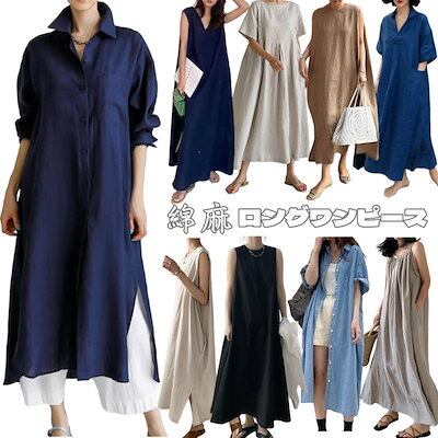 夏新作 綿麻 ロングワンピース ポケット付き 袖無し キャミワンピース 半袖/長袖 リネン ゆったり 大きいサイズ ノースリーブ シャツワンピース メガ割