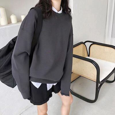 パーカー 韓国ファッション 丸首 衛衣秋冬デザイン感ゆったり韓国版パーカー Tシャツカットソー マウンテンパーカー