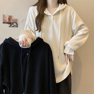 パーカー ビッグサイズ連帽トップス女秋の新ゆったりシンプル風長袖Tシャツ衛衣女 マウンテンパーカー