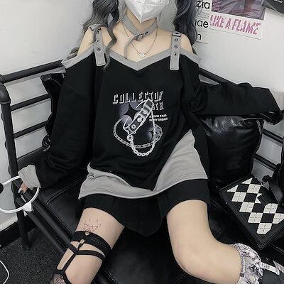 デザイン感ダーク系肩出しプリントの首輪ゆったりパーカー コスプレ服 マウンテンパーカー