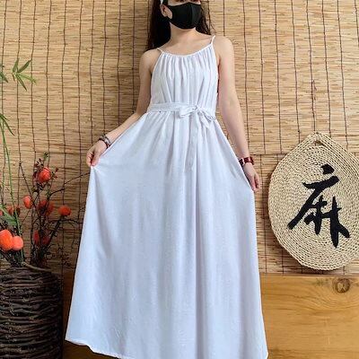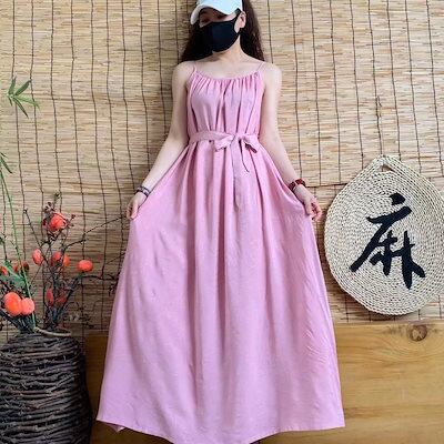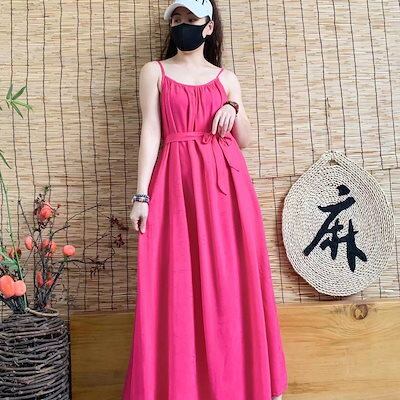 ヘビロテ!キャミワンピース 夏 新しい休日旅行ビーチドレス綿スリングドレスロングドレス