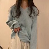 人気なリブニット 秋冬新作 ゆったり 可愛い 厚手 ニットセーター レディース セーター Vネック ニット トップス通勤 韓国ファッション ベーシックニット カシミヤタッチ 福袋