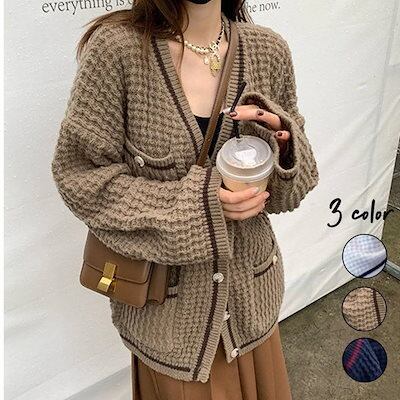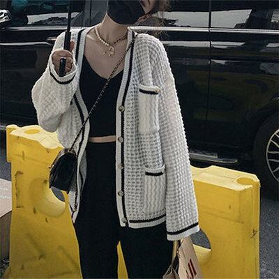 人気なリブニット ベーシックニット 秋アウター 韓国ファッション ニットカーディガン ゆったり百掛け カーディガン 怠惰な風 秋 ニットトップス セーター レディースカシミヤタッチ
