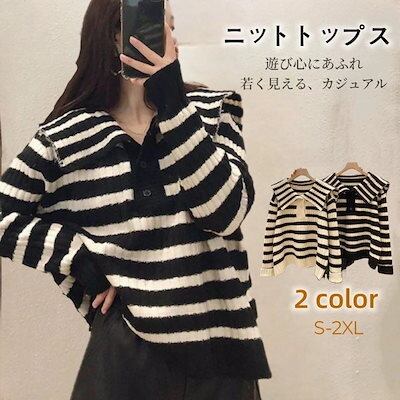 人気なリブニット ベーシックニット ストライプ ニットトップス 秋冬 ゆったり百掛け セーター レディース 韓国ファッション着痩せ 暖かい ニットセーターカシミヤタッチ