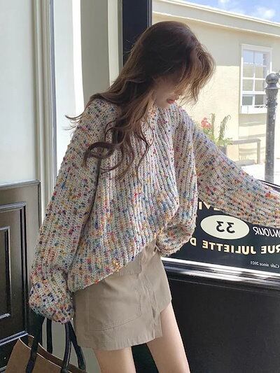 人気なリブニット 韓国ファッション 人気 カラー ニットセーター レディース怠惰な風 レトロおしゃれセーター ゆったり 着痩せ 百掛け 長袖カシミヤタッチトップスベーシックニット
