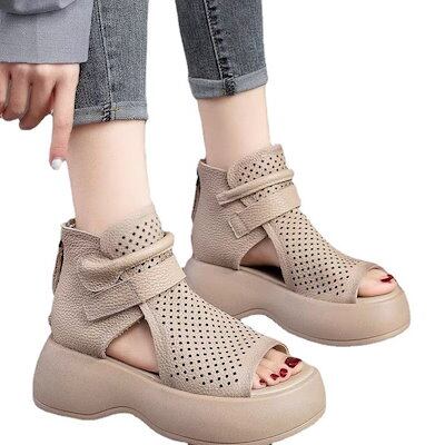 韓国 厚底サンダル レディース 2025夏新作アウター透かし彫りショートブーツローマレディースサンダル スポーツサンダル 通気 ビーチ フラットサンダル 春夏 ストラップサンダル