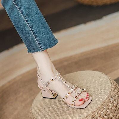 韓国人气 厚底サンダル レディース 2025夏新作仙女風ミドルヒールローマンハイヒール スポーツサンダル 通気 ビーチ フラットサンダル 春夏 ストラップサンダル
