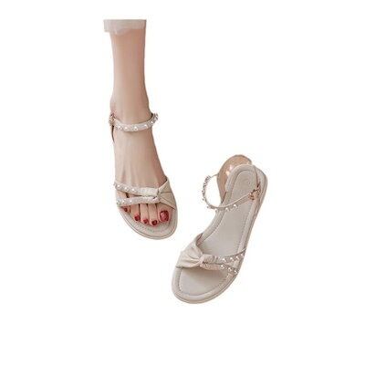 韓国人气 厚底サンダル レディース 2025新作サマーアウターパールリボンビーチサンダル スポーツサンダル 通気 ビーチ フラットサンダル 春夏 ストラップサンダル