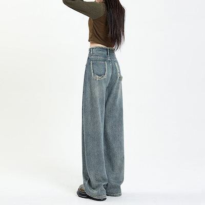 【3日以内出荷】スラックスパンツ レトロ ワイドパンツ ジーンズ レディース 春と秋 2024年新作 ハイウエスト ストレート ルーズ ドレープ デザイン 韓国