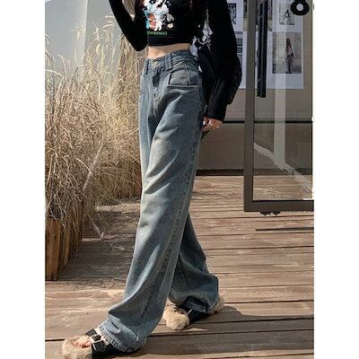【3日以内出荷】スラックスパンツ ヴィンテージ ストレート デニムパンツ レディース 秋 アメリカンスタイル ハイウエスト ルーズ ワイドパンツ ズボン 韓国