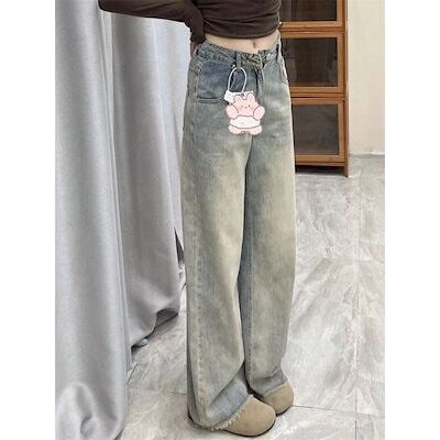 【3日以内出荷】スラックスパンツ 小さい より高く ローエッジ ストレート ジーンズ レディース 2024 夏秋 ドレープ クロッチ パンツ 韓国