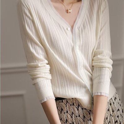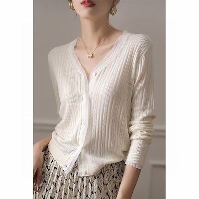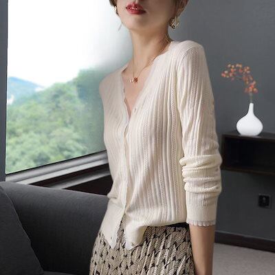 【3日以内出荷】カーディガン uvカット 夏の新作 フレンチ レトロ Vネック デザイン 長袖 薄手 ジャケット レディース 韓国ファッション