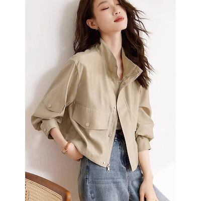 【3日以内出荷】アウター 無地 薄 ワークウェア ジャケット 2024 夏 秋 ルーズ ショート カジュアル 多用途 通気性 日焼け防止ウェア トップス 韓国