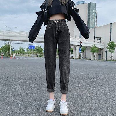【3日以内出荷】脚長効果!スキニーデニムパンツ ジーパン 腰を緩める ゆとりがある ストレートパンツ 春秋 新品 ハイウエスト パンツ やせて見える 九分ズボンレディース 韓国