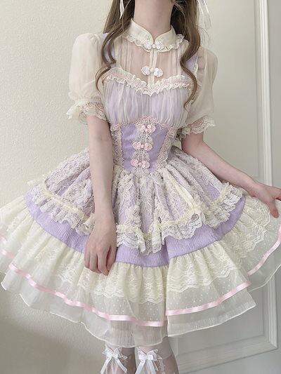 コスプレ ロリータ せっけい 中華 バレエ風 つり革 jskワンピース 夏 ドレス 韓国 花嫁 茶会
