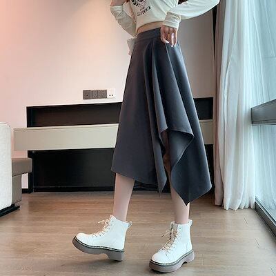 マキシスカート ロングスカート 新型 A字スカート ハイウエスト スリム アシンメトリーデザイン 夏と秋 不規則な 半身スカート レディース 韓国ファッション