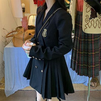 ス一ツ/新生活応援ビジネス特集?スーツ韓国版学院ウエストプリーツダブル小ぶりスーツワンピース