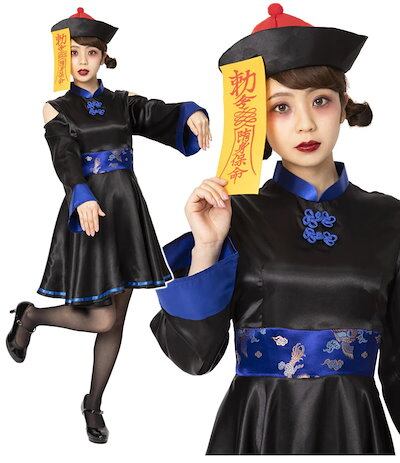 【急速出荷】ハロウィン コスプレ キョンシー 子供 女の子 男の子 中国 ゾンビ 親子ペア 可愛い ガールズキョンシー 衣装 ホラー 妖怪 お化け 変装 イベント 仮装 パーティー 文化祭 親子服