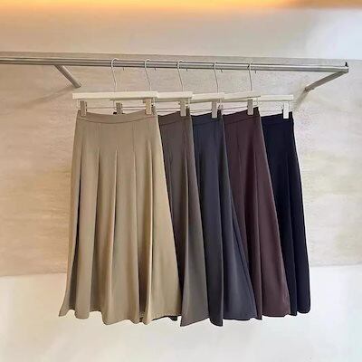 マキシスカート 2024年秋の新作 ハイウエスト スリム ドレープ Aラインスカート 百掛け 半身スカート モリ ミドル丈スカート 韓国