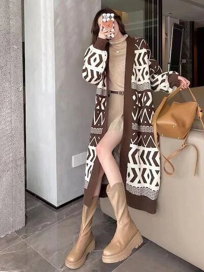 2023新品 大人気 秋 カーディガン ゆったり おしゃれ百掛け セミロング ニット アウター カーディガン