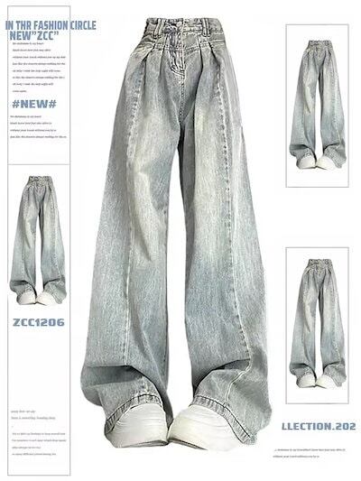デニムパンツ レトロ 明るい色 ハイウエスト ワイドレッグ ジーンズ レディース 2024 新しいスタイル ドレープ