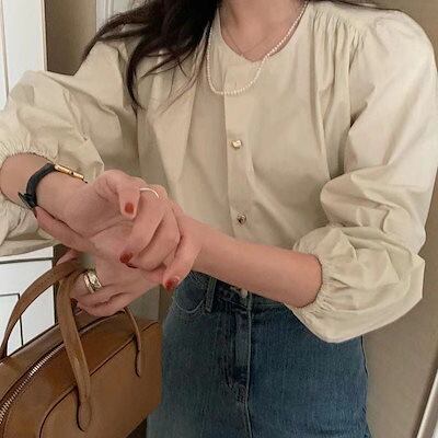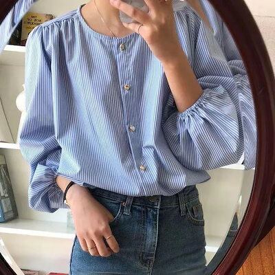 初秋シアーシャツ 日系ストライプゆったり 長袖ブラウス 韓国ファッション 百掛け着痩せ インナー 流行り 長袖トップス 着痩せTシャツ