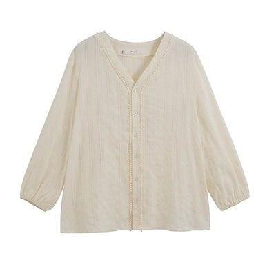 シアーシャツ 初秋 流行り Vネック レース長袖ブラウス レディース着痩せ 韓国ファッション 可愛い白ブラウス 秋百掛け 長袖トップス 着痩せ気質 通勤インナー Tシャ