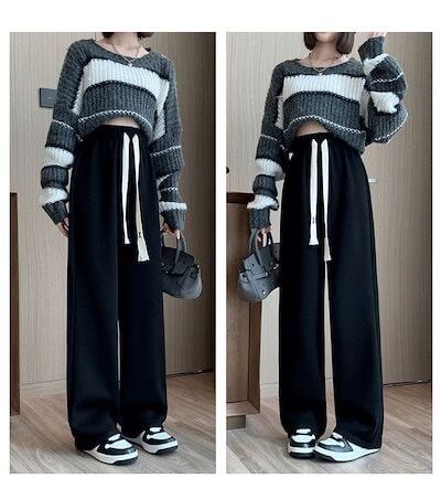 ワイドパンツ ロイワイドパンツ タイプ ストレートパンツ 韓国ファッション レッグパンツ レディース秋冬 ハイウエススキニーパンツ 脚長効果! ひんやりボトムス