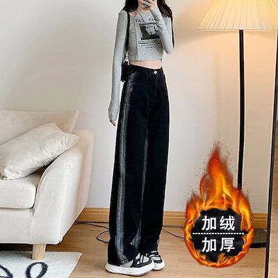 脚長効果! 厚手 裏起毛デニムパンツ ジーンズ レディース パンツ ワイドパンツ スキニー 裏起毛 韓国ファッション ズボン秋冬