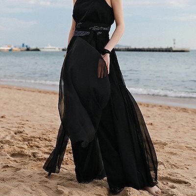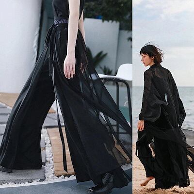【メガ割 】シフォンガウチョパンツ ワイドパンツ レディース キュロットパンツ 黒 涼しい 飄逸 暗黒風