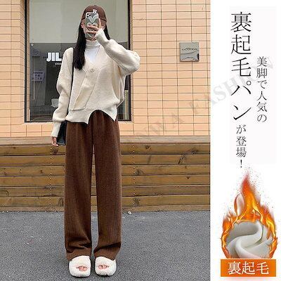 ワイドパンツ レディース ロングパンツ 裏起毛 ボア ガウチョパンツ ボトムス ウエストゴム カジュアル 体型カバー 防寒 秋冬 ゆったり