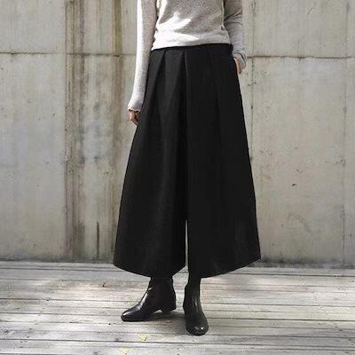 ガウチョパンツ レディース ワイドパンツ フレアパンツ スカーチョ 秋冬 厚手 体型カバー ボトムス 美脚 ズボン カジュアル 無地 きれいめ 九分丈